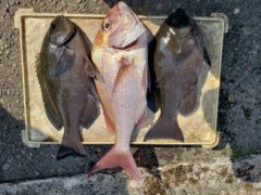 京都市の藪内 英行氏 釣果 グレ 44~41㎝ 2匹 真鯛 50㎝