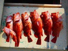 船外機ボートで大原さんがアカハタ、カサゴ、カワハギをゲット。