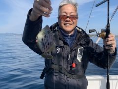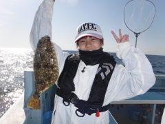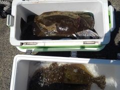 船外機ボートでスズキ95cmとヒラメ61cmをゲット。