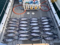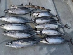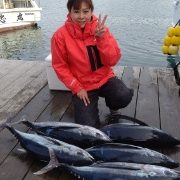 田中さんらがティップランで出船。アオリイカ1.0キロ~0.8キロを4杯甲イカ2杯