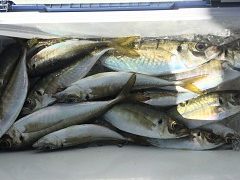 午前便アジ釣り 今日も潮が動かず喰い辛い日でした。小アジに80cmのヒラメが喰…