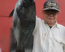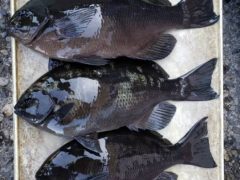 磯釣りで坂口さんがチヌ47cmまでとイガミをゲット。