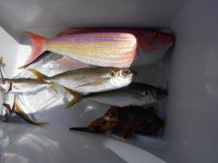 アジ好調に釣れました(^^)他にもブリやワラサ船中5本!ヒラメ、真鯛も釣れたりし…