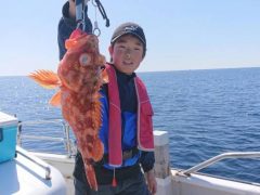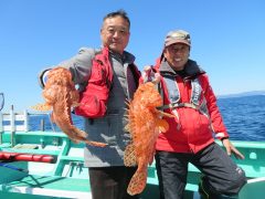 船外機ボートで松原さんがアカハタ、オオモンハタをゲット。