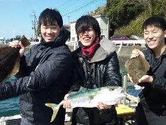 田中様 ヒラメ52cm、コチ50cm、マトウダイ33cm。要免許船。