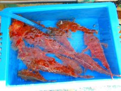 マハタ、ホ-キハタ、キジハタの頭が50センチ前後。他にヒラメ、オニカサゴ、カサゴ…