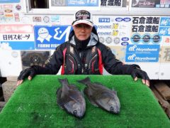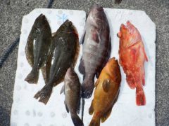 ヒラメ5枚頭に(船中16枚)、サワラ、ハタ、カサゴ、マトウダイ、アオリイカ、他