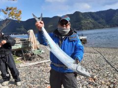 船外機ボートで福井さんがアオリイカ1.4kgまでゲット。