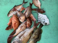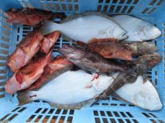 ヒラメ(35~45cm)1~4匹・ホウキハタ(30cm)・マハタ(36cm)・カ…