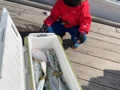レンタルボート釣果 ヒラメ49cm ハマチ47cm イトヨリ他