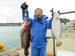 釣果 マハタ(55cm)・キジハタ(42cm)・ヒラメ(40~50cm)・マトウ…