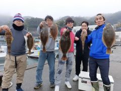 手漕ぎボートで箕浦さんがヒラメ53cmをゲット。