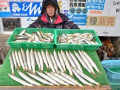 手漕ぎボートで佐々木さんがアジ、カマスをゲット。