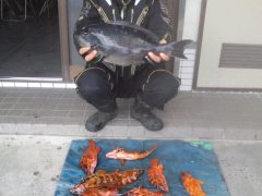 四日市市 亀山淳一郎氏 釣果 グレ 46cm アカハタ 32cm迄 8匹 オオモ…