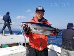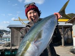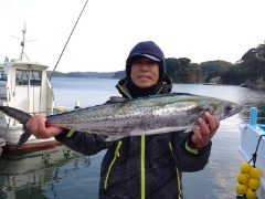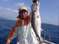 船外機ボートで矢地さんがワラサをゲット。