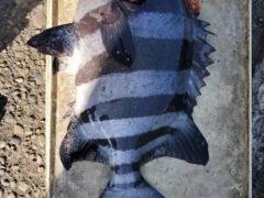 磯釣りで高橋さんがイシダイをゲット。