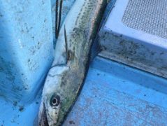 船外機ボートで庄山さんがカマスをゲット。