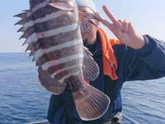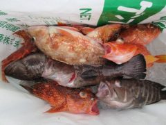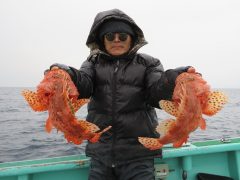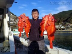 アオリイカ胴長27cm頭に2杯、アカハタ33cm頭に3匹
