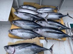 トンジギ釣果 ビンチョウマグロ18.8キロ〜12.2キロ カツオ12.2キロ〜6…