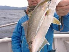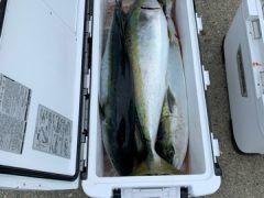 船外機ボートで平木さんがワラサ、シマアジ、メイチ、オオモンハタをゲット。
