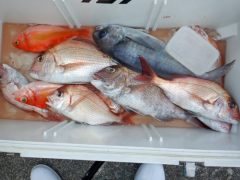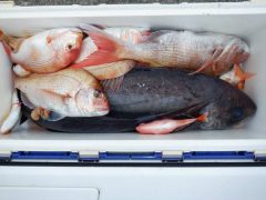 阿田和沖釣果 鈴鹿の永澤さんらがマダイ45~60㎝14匹 メダイ60㎝1匹 レン…