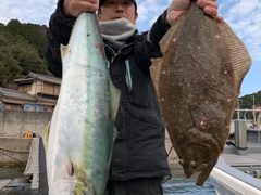 釣果 ブリトニー2本 ハマチ1匹 ヒラメ7枚 テェイ1枚
