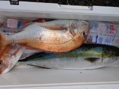 釣果 ブリ 2本 サワラ 2本 鯛 5枚 ナイスヒラメ 4枚 ハマチポツポツ
