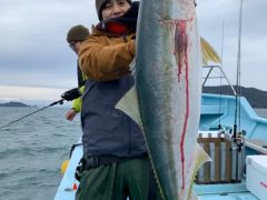 船外機ボートで大村さんがワラサ、イトヨリ、カワハギをゲット。