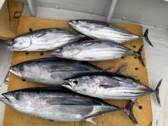 トンジギ釣果 ビンチョウマグロ12.5キロ、9.4キロ カツオ7.6〜5.1キロ