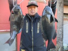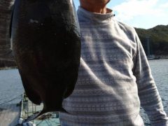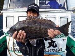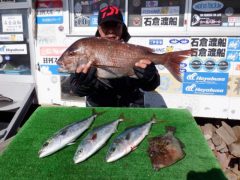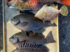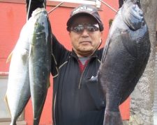 磯釣りで野崎さんがマダイ71cm、ハマチ、カワハギをゲット。