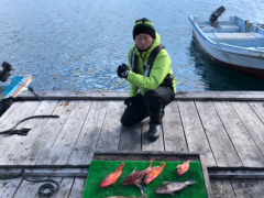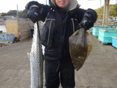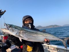 船外機ボートで岡村さんがカマス、アジをゲット。