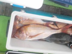 エレキ船釣果 マダイ37cm2尾 アジ<21cm