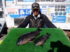 今井 正寿氏 平スズキ 55cm 1匹 ヒラマサ 75cm 1匹 グレ 30cm…