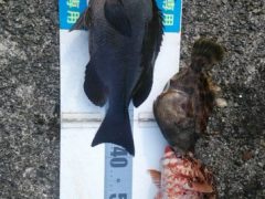 口太グレの40センチを1匹、カワハギ1匹、イガミ1匹。