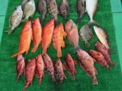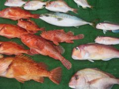 真鯛、アマダイ、鬼カサゴ、ウッカリカサゴ、ツバス、レンコ