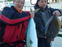 午前便釣果 ヒラメ 40~59㎝ 0~11枚 船中37枚 ワラサ 70㎝ 2匹他