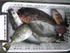 磯釣りで福田さんがイガミ、カワハギ、アイゴをゲット