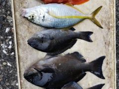 尾長グレ 36~30㎝ 3匹 シマアジ 1匹 アカハタ 37㎝ 1匹