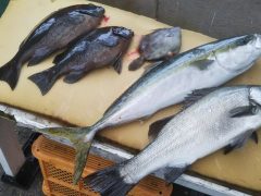 ヒラスズキ 60cm 1匹 ワラサ 70cm 1匹 ぐれ 37~45cm 2匹 …