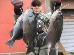 千葉隆之さんが、尾長グレの35-38センチを各1匹、アコウの38センチを1匹。
