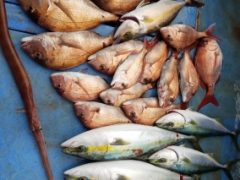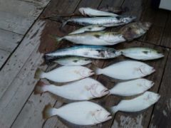 船外機ボートで澤田さんがカマス、アジ、カワハギをゲット