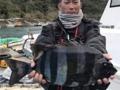 二木島沖釣果 千葉隆之さんが、尾長グレの35-38センチを各1匹、アコウの38セ…