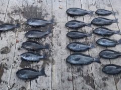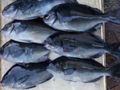 磯釣りで武笠さんがグレ、アイゴ、アカハタ、カワハギをゲット。