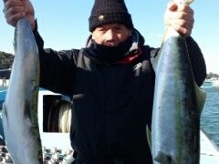 イワシの生き餌でヒラメ、青物狙い皆さん釣れて2~8匹の釣果