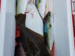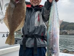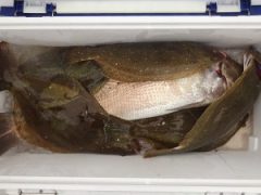 ヒラメ(36~46cm)2~5匹 外道にカンパチ・ハマチ オモリ60号