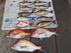 マダイ38cm3尾 メジナ26cm アジ<23cm30尾 他 小ダイ