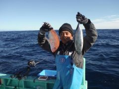 船外機ボートで井上さんがワラサ、サゴシ、ツバスをゲット
