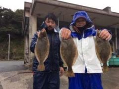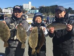 津市の松本氏らの乗り合い ヒラメ 38~56㎝ 2~7枚 船中28枚 ハマチ…