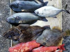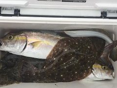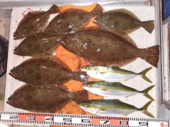 午前便 今日も皆様ヒラメ釣れ竿頭様7枚でした!カンパチやシオもちょこちょこ混ざり…