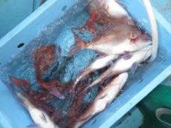 マダイ 25~42cm 30匹。 ワラサ 70cm 1匹。 大ハマチ …